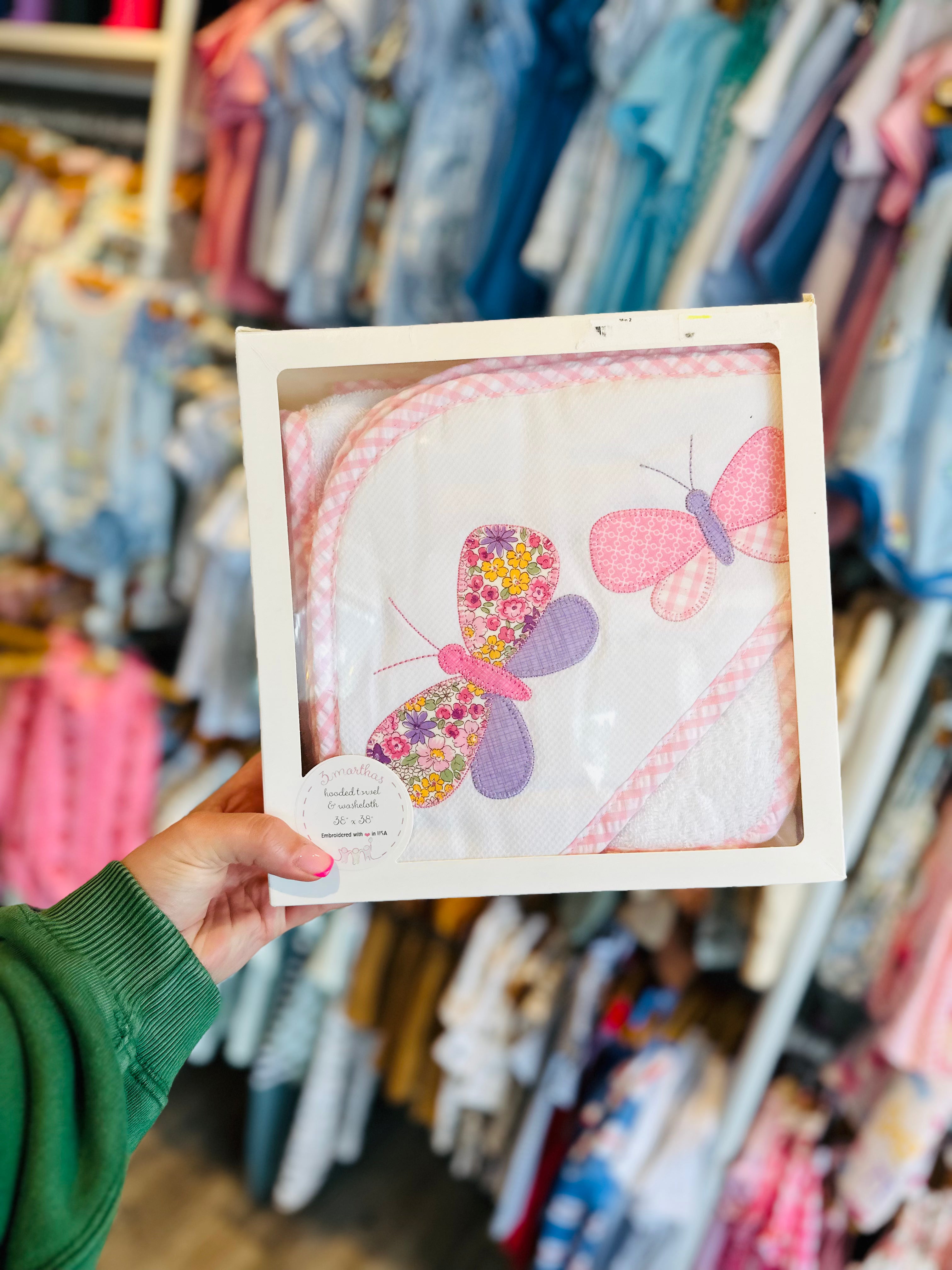 3 Marthas - Butterfly Boxed Applique Hooded Towel & Washcloth Set