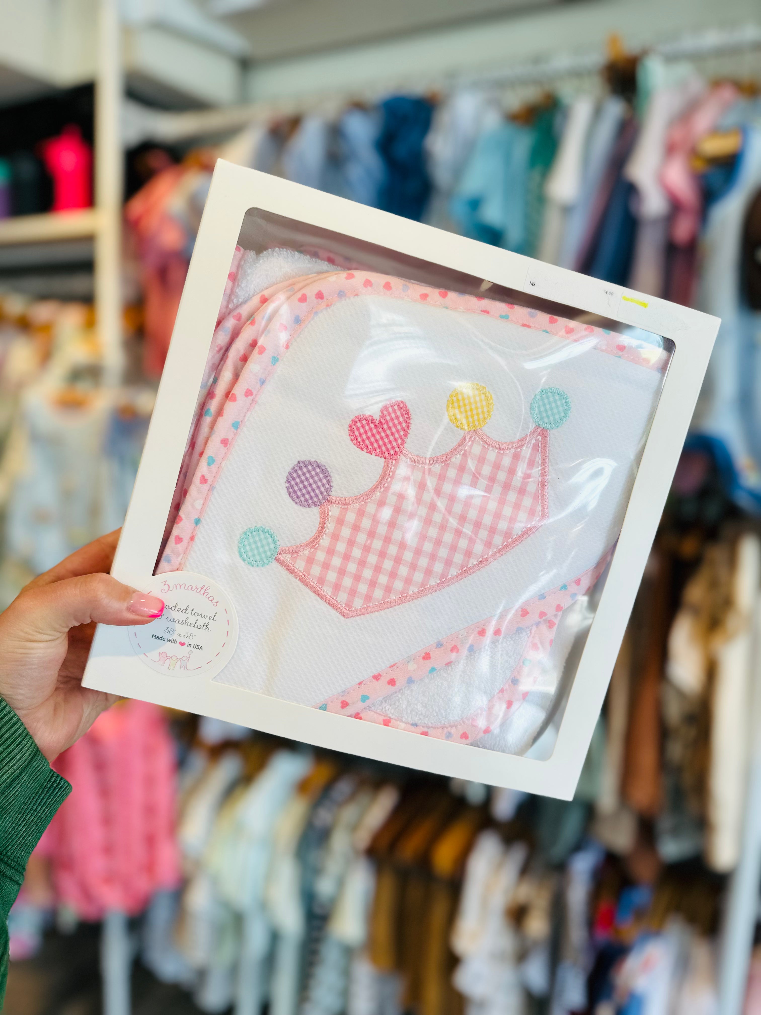 3 Marthas - Princess Boxed Applique Hooded Towel & Washcloth Set