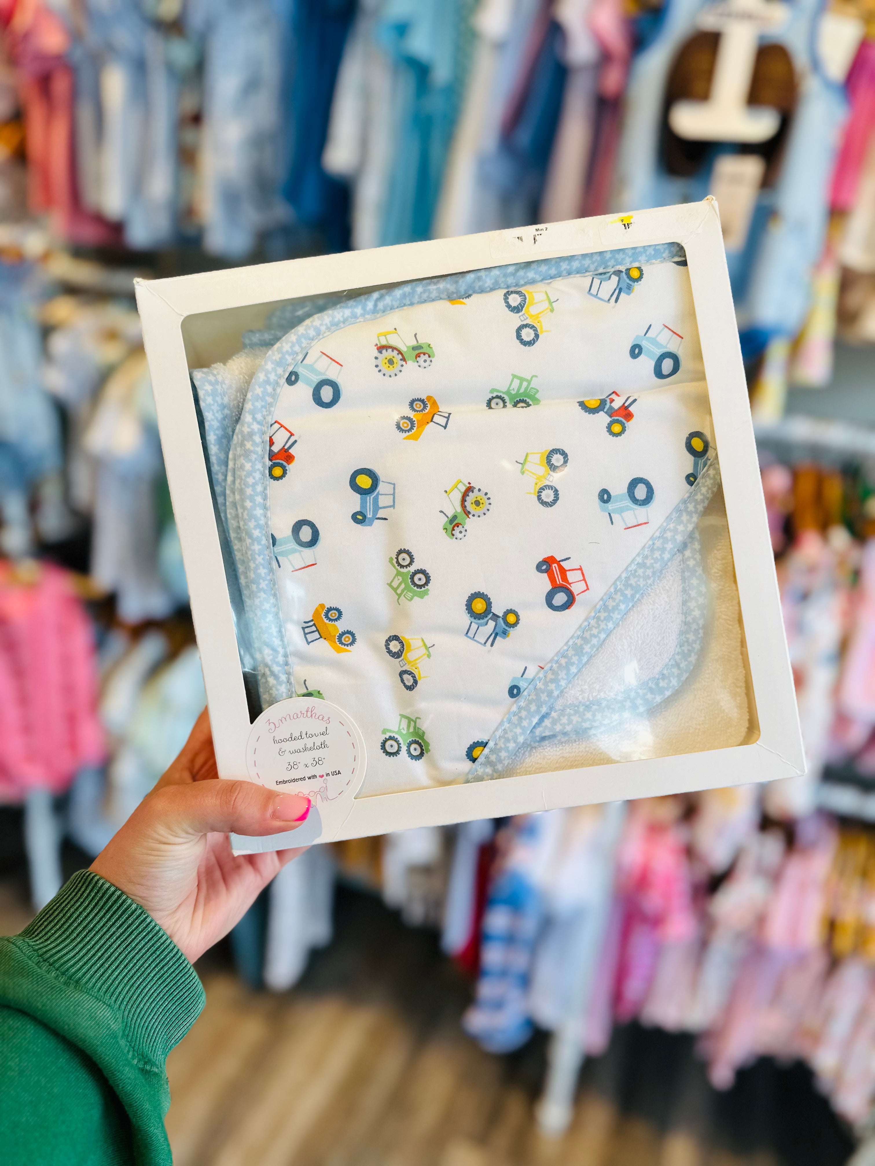 3 Marthas - Tractors Boxed Applique Hooded Towel & Washcloth Set