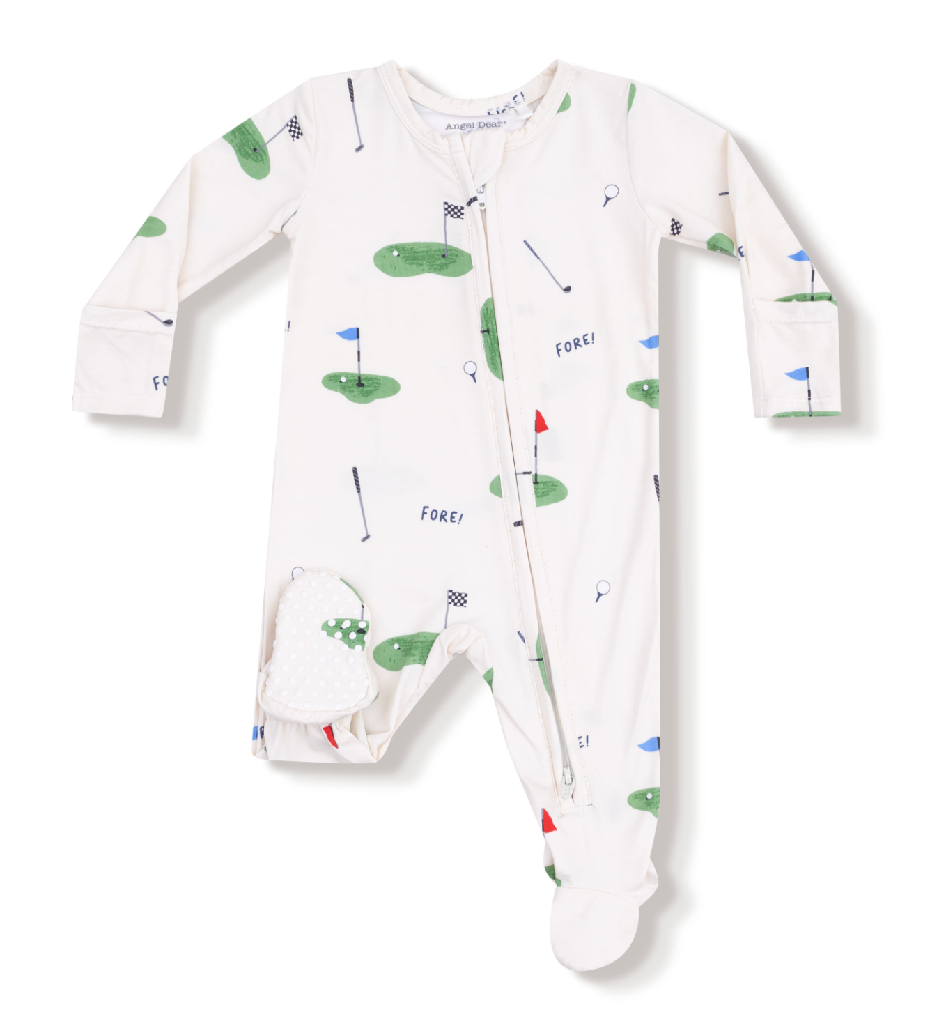 Keep your little golfer cozy and ready for adventure in the Angel Dear 2 Way Zipper Footie. Featuring a fun golf-themed design in ivory and navy, this footie offers easy diaper changes with its convenient two-way zipper. Soft and snug, it’s perfect for baby boys who love to tee off in comfort and style.