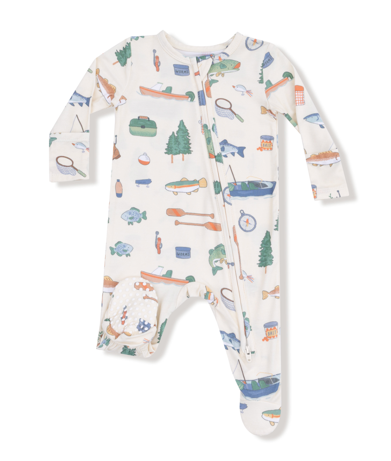 Angel Dear - 2 Way Zipper Footie - Fishing Things - Frosty Spruce