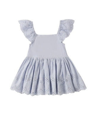 Magnolia Baby - Blessed Blue Embroidered Collared Gathered Gown