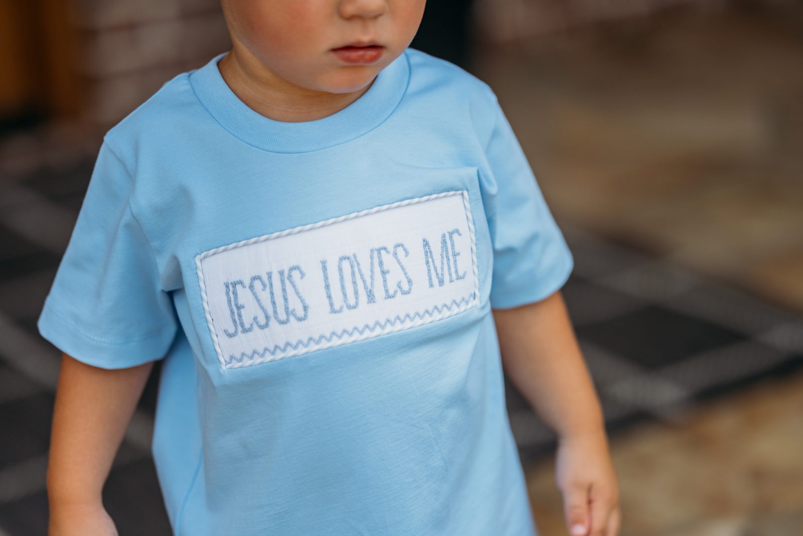Banana Split - Jesus Loves Me Smocked Boy Short Set