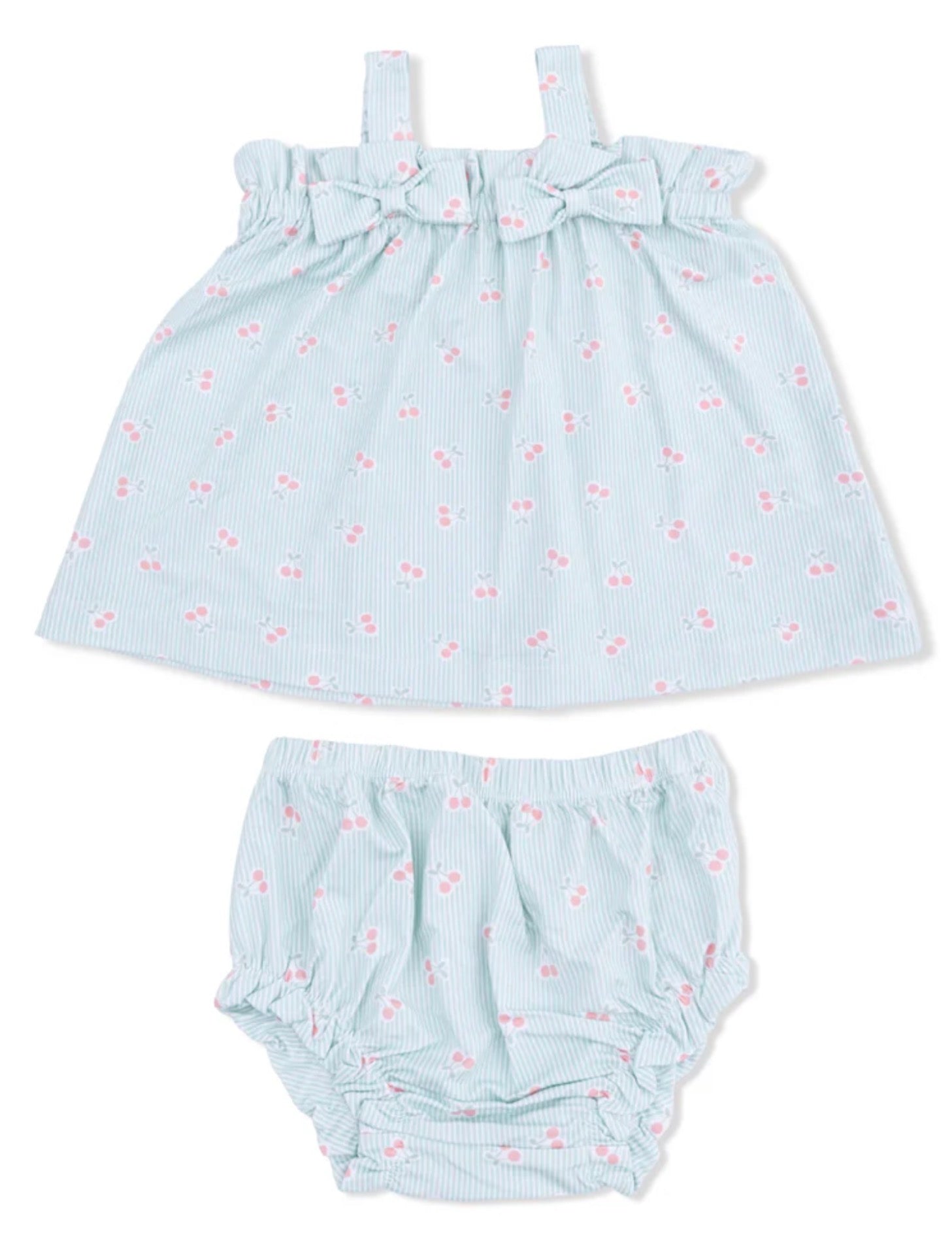 Angel Dear - Top with Bows and Ruffle Leg Bloomer - Tiny Cherry Stripe