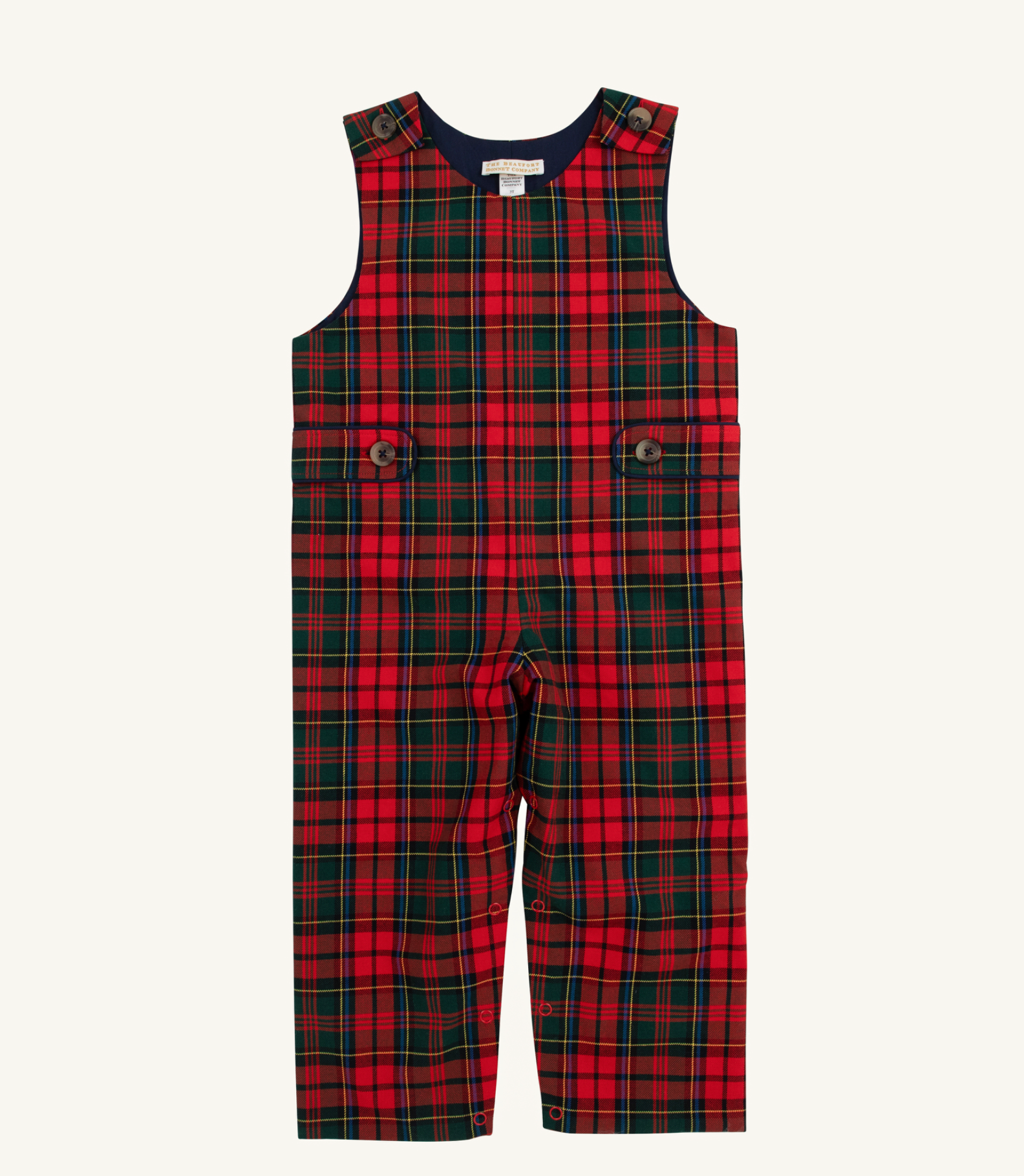 The Beaufort Bonnet Company - Long Sleeve Bradford Romper - Barrington Blue/Kiawah Kelly Green/Christmas Tree
