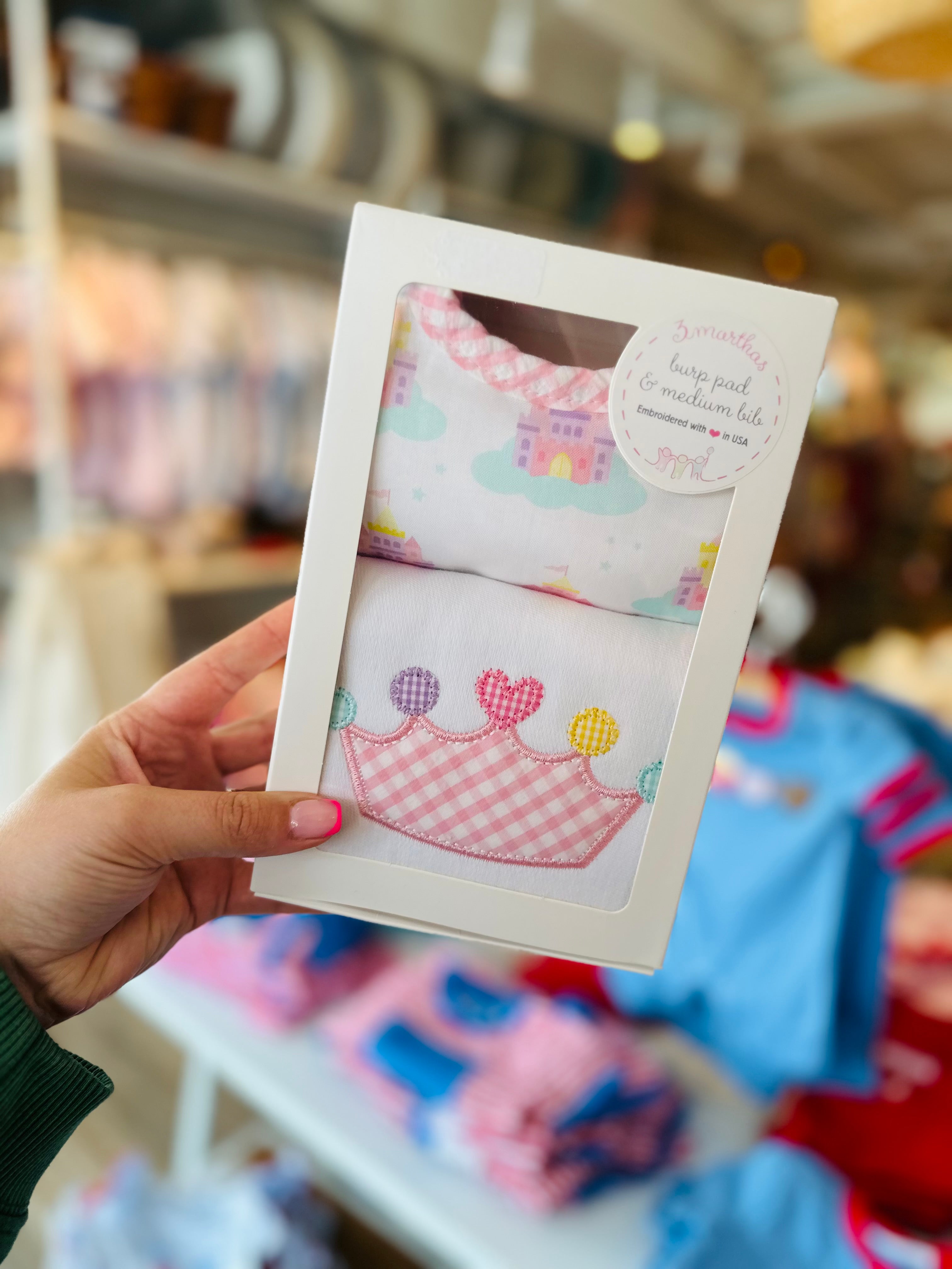 3 Marthas - Princess Boxed Applique Burp and Bib Set