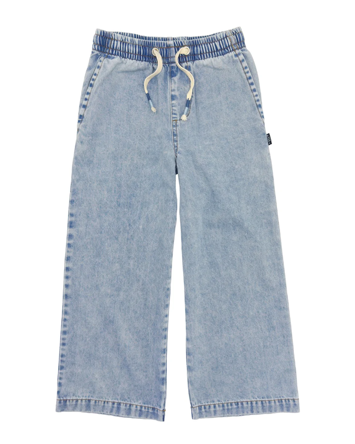 A soft denim pant with wider leg and a standard fit through waist and hips. Designed to match everything in their closet and ideal for daily wear.