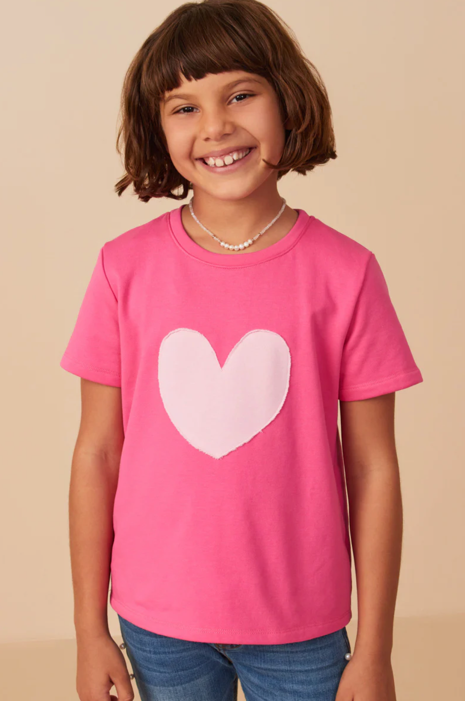 Add a pop of personality to any outfit with this quirky heart patch contrast band tee in pretty pink. Perfect for little girls who want to stand out, this tee is both stylish and fun.