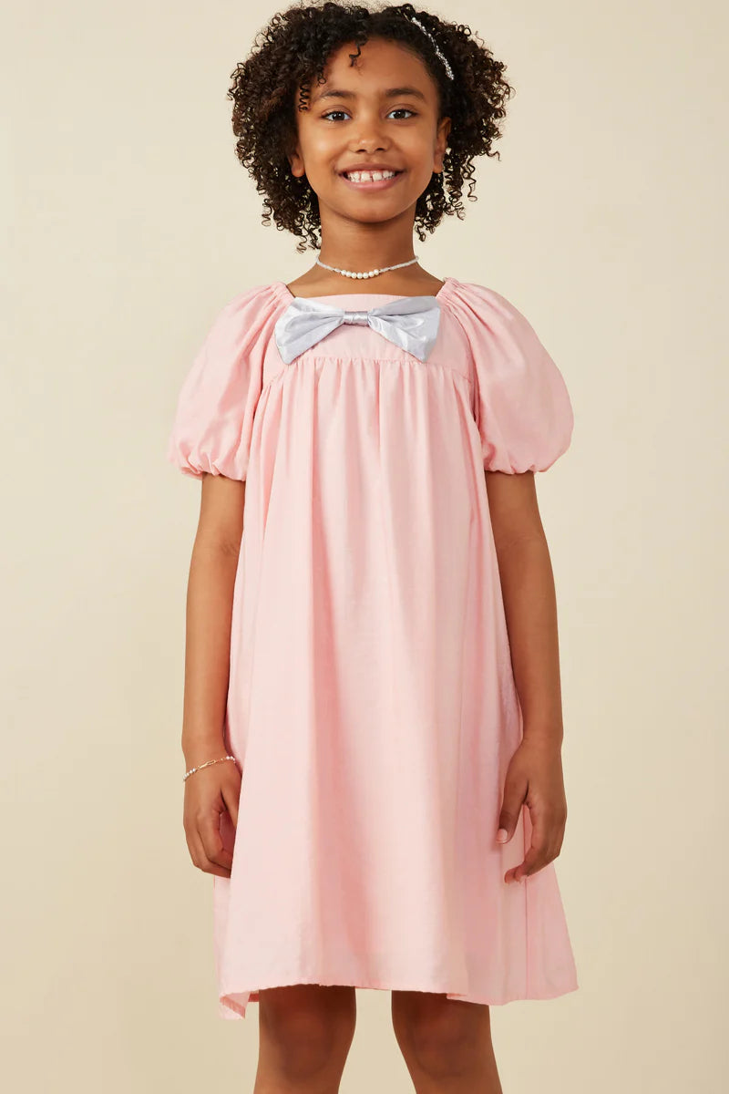 Hayden Girls - Metallic Bow Detailed Puff Sleeve Dress - Pink *FINAL SALE*