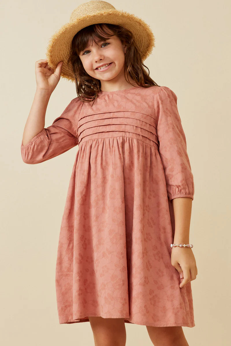Hayden Girls - Pleated Detail Embroidered Dress - Rose *FINAL SALE*