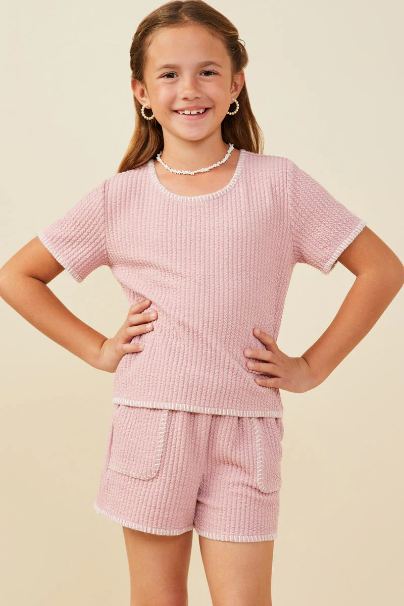 Hayden Girls - Contrast Stitch Textured Knit Top - Pink