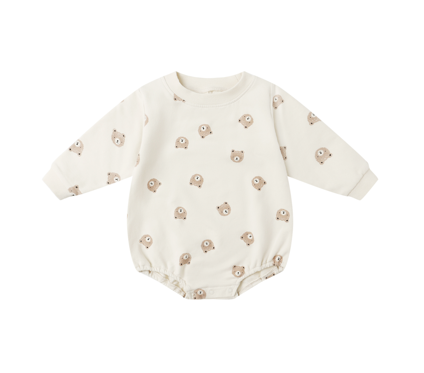 Quincy Mae - Crewneck Bubble Romper - Brown Bear